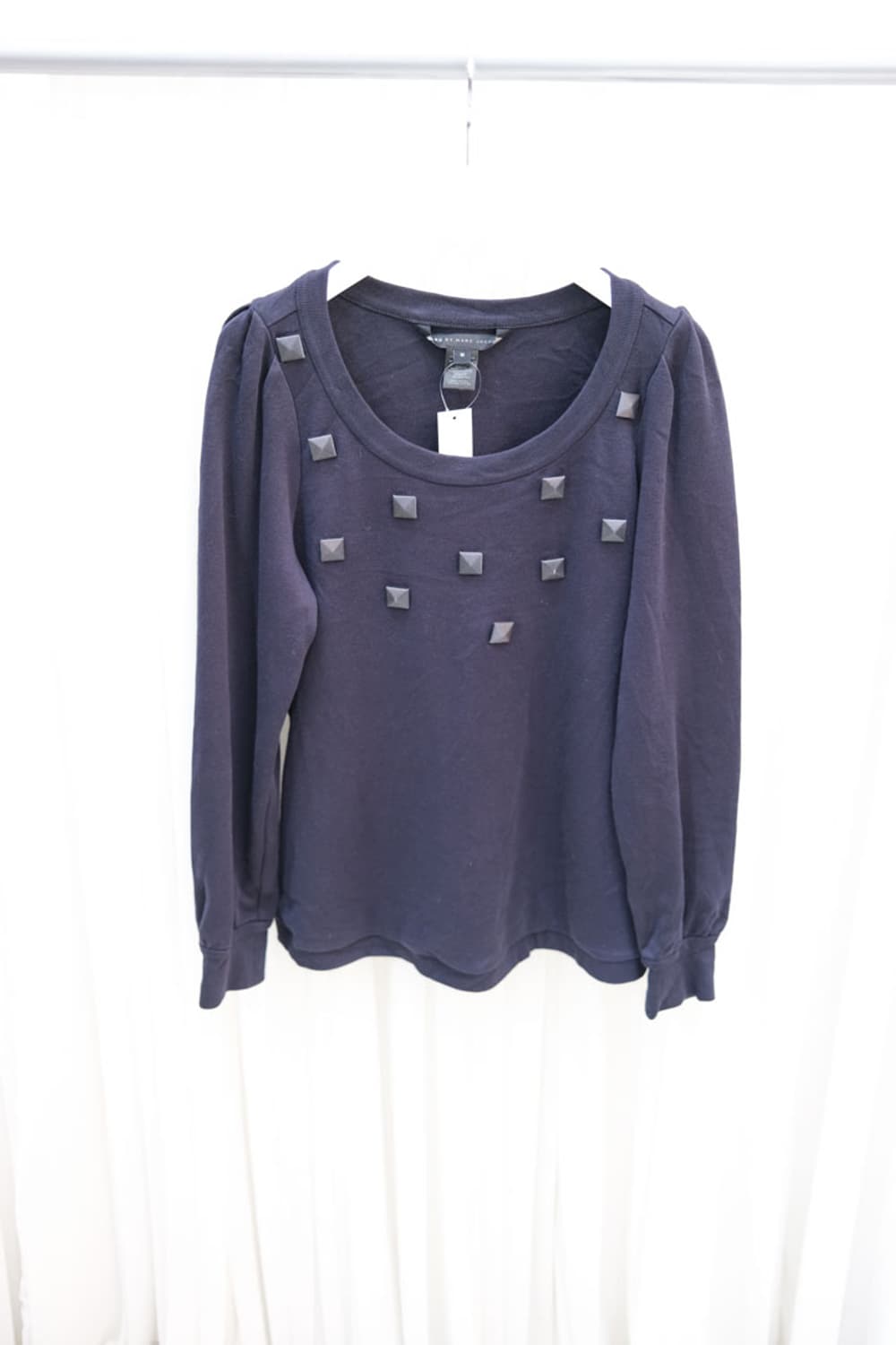 Marc by Marc Jacobs º Size (바닥에 두어서 최대로 측정) 어깨 33cm 가슴 48cm 팔 63cm 총장 60cm º Material Cotton 100% º Marc by Marc Jacobs 스웻셔츠입니다. 펑키한 스터드 장식과 러블리한 무드의 퍼프 슬리브 디테일의 조화가 유니크한 아이템입니다.