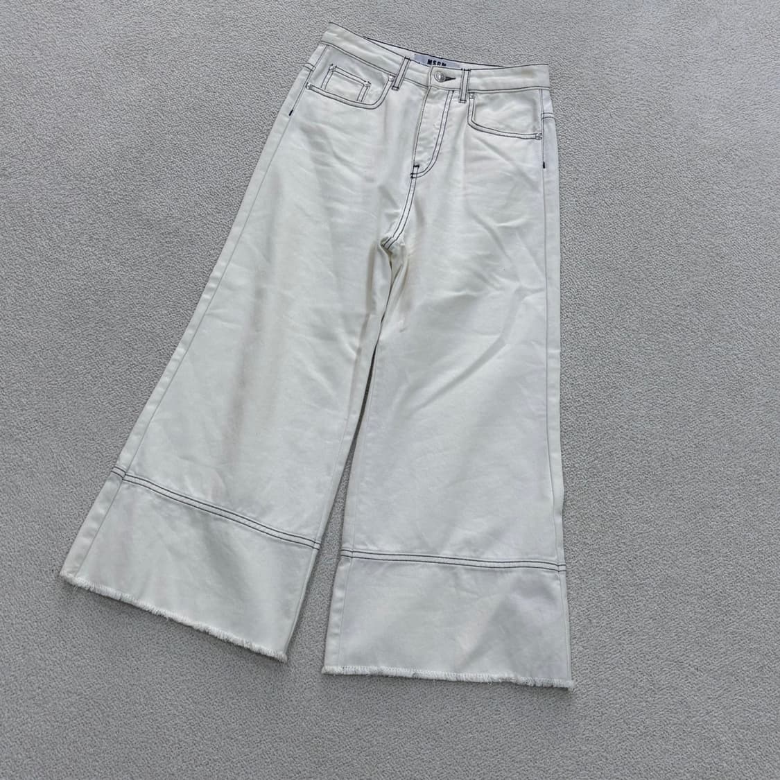 • msgm 베이지 네온 스티치 부츠컷 코튼 팬츠
