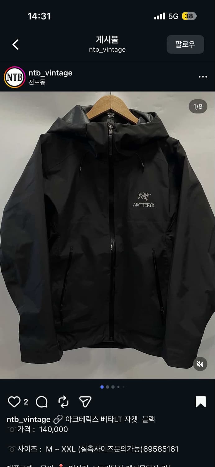 아크테릭스 베타 고어텍스 L
