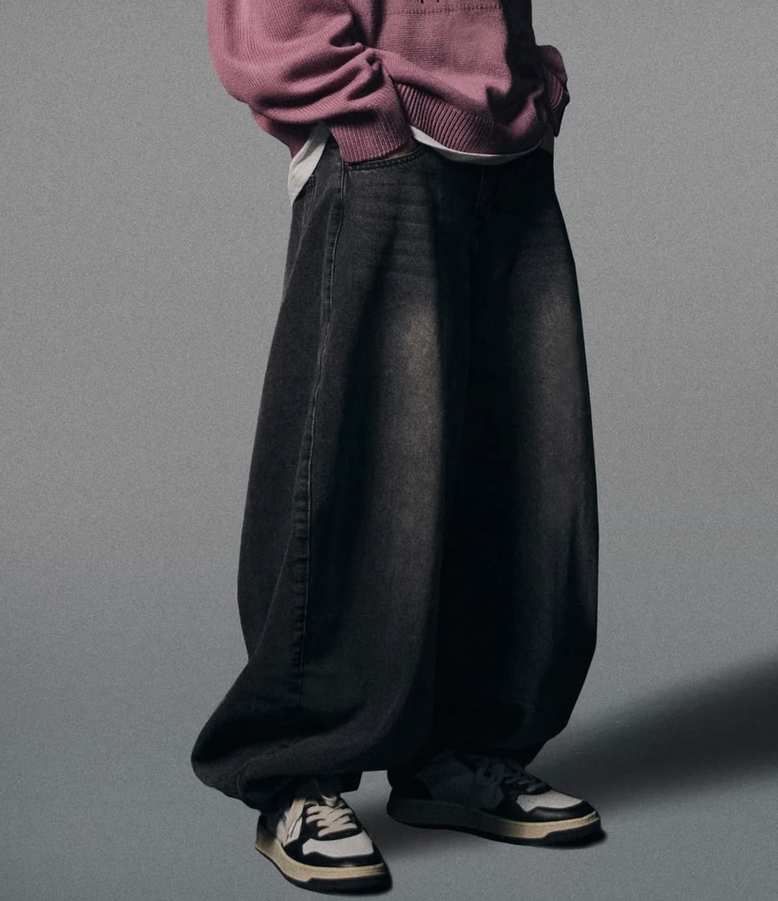 (L) 낫포너드 핸드 루즈 와이드 데님 팬츠 블랙