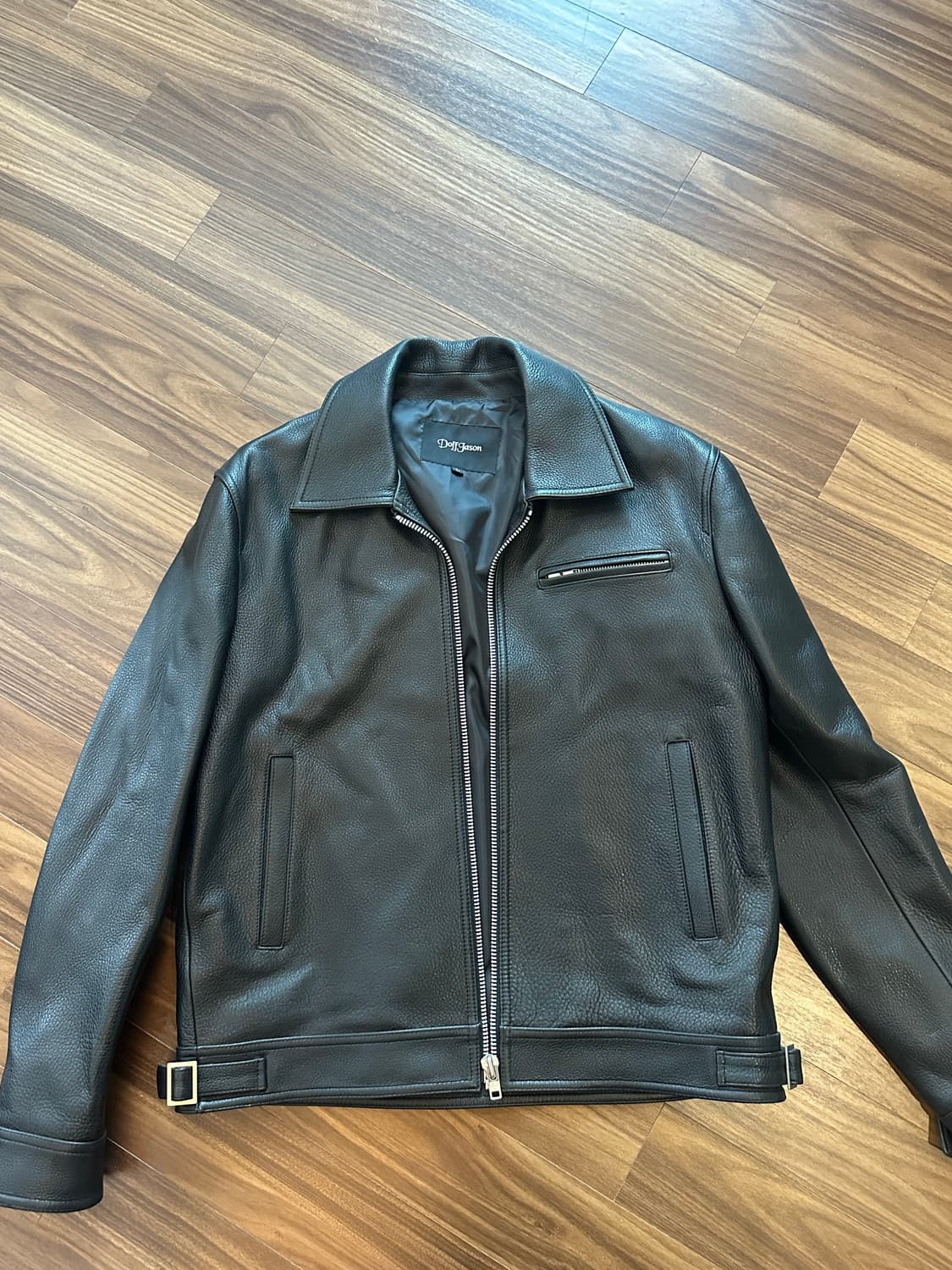 고급스러운 블랙 컬러의 도프제이슨 램스킨 자켓이에요 부드러운 양가죽 소재로 편안하게 착용 가능하며, 깔끔한 디자인으로 어디에나 잘 어울려요 사진에서 보이는 것처럼 L 사이즈이며, 내부 안감도 부드러워요 클래식한 디자인으로 유행 타지 않고 오래 입기 좋은 자켓이랍니다 상태 매우 매우좋아요 교환환불 불가
