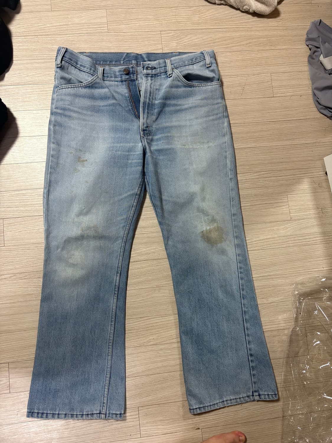 70s 워싱 죽여주는 벨바텀입니다 거품 다 빼고 샵에 비해 싸게팝니다 샵퀄이랑 같은거 싸게 데려가세요 오늘 까지 택포 24