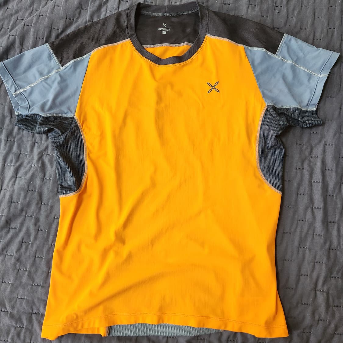몬츄라 기능성 티셔츠입니다. 오렌지와 그레이 색상 조합이 매력적이에요. 등판에 지퍼 포켓이 있어 소지품 보관이 용이합니다. 활동적인 분들에게 추천드리는 시원한 착용감의 티셔츠입니다 전반적으로 깔끔 합니다. 가슴50 총장67 이뿐제품 많아요 ~