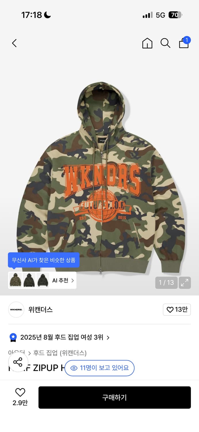 위캔더스 밀리터리 후드집업 3번 입는 거 싸게 팔아요