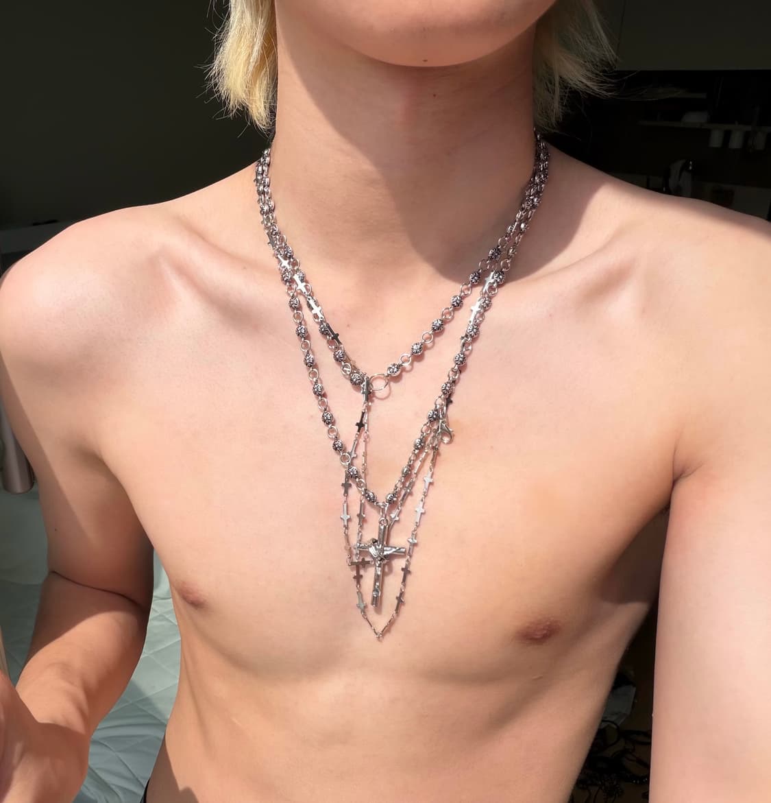 목걸이 두개정도가 연결되어있는 레이어드 목걸이입니다. 실버 컬러라 아무곳이나 매칭하기 좋습니다.