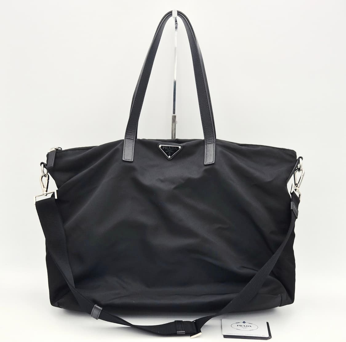 프라다(PRADA) 나일론 2WAY 더플백 프라다 시그니처 리나일론(나일론) 소재로 제작된 대형 토트/숄더 겸용 백으로, 가볍고 내구성이 뛰어나 여행용 및 데일리 활용 모두 가능한 실용적인 모델입니다. 상단 지퍼 클로징 토트 핸들 + 탈부착 가능한 숄더 스트랩 전면 프라다 삼각 로고 장식 넉넉한 수납 (여행, 운동, 출퇴근용 가능 가벼운 무게 대비 높은 수납력 구성품 개런티 카드, 숄더 스트랩 한국명품감정협회 감정서 📌 모델코드 2VG024 (TESSUTO + SAFFIANO) 사이즈: 48.5 * 32 cm 구성품: 제품카드, 숄더스트랩, 한국명품감정협회감정서 상품등급: A . 바디: 미세이염외 자연스러운 사용감 내부: 자연스러운 사용감 외 양호 코너: 미세마모