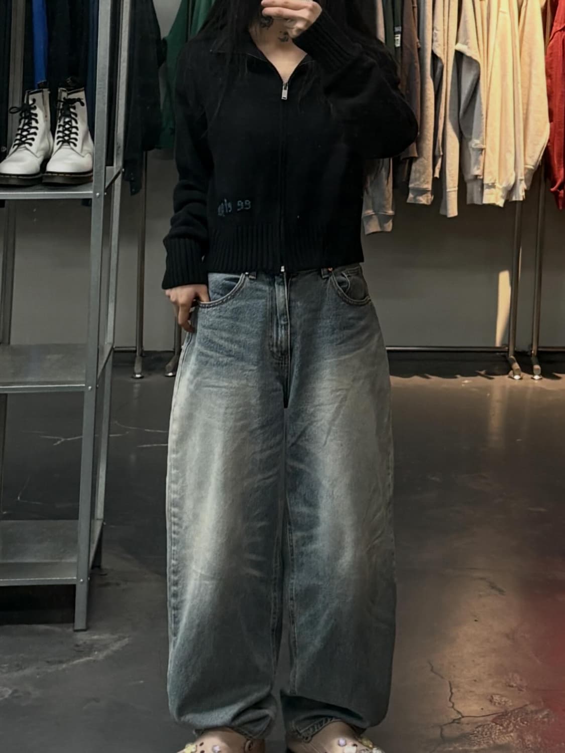 • 엔조블루스 하이넥 니트집업 블랙 A3772