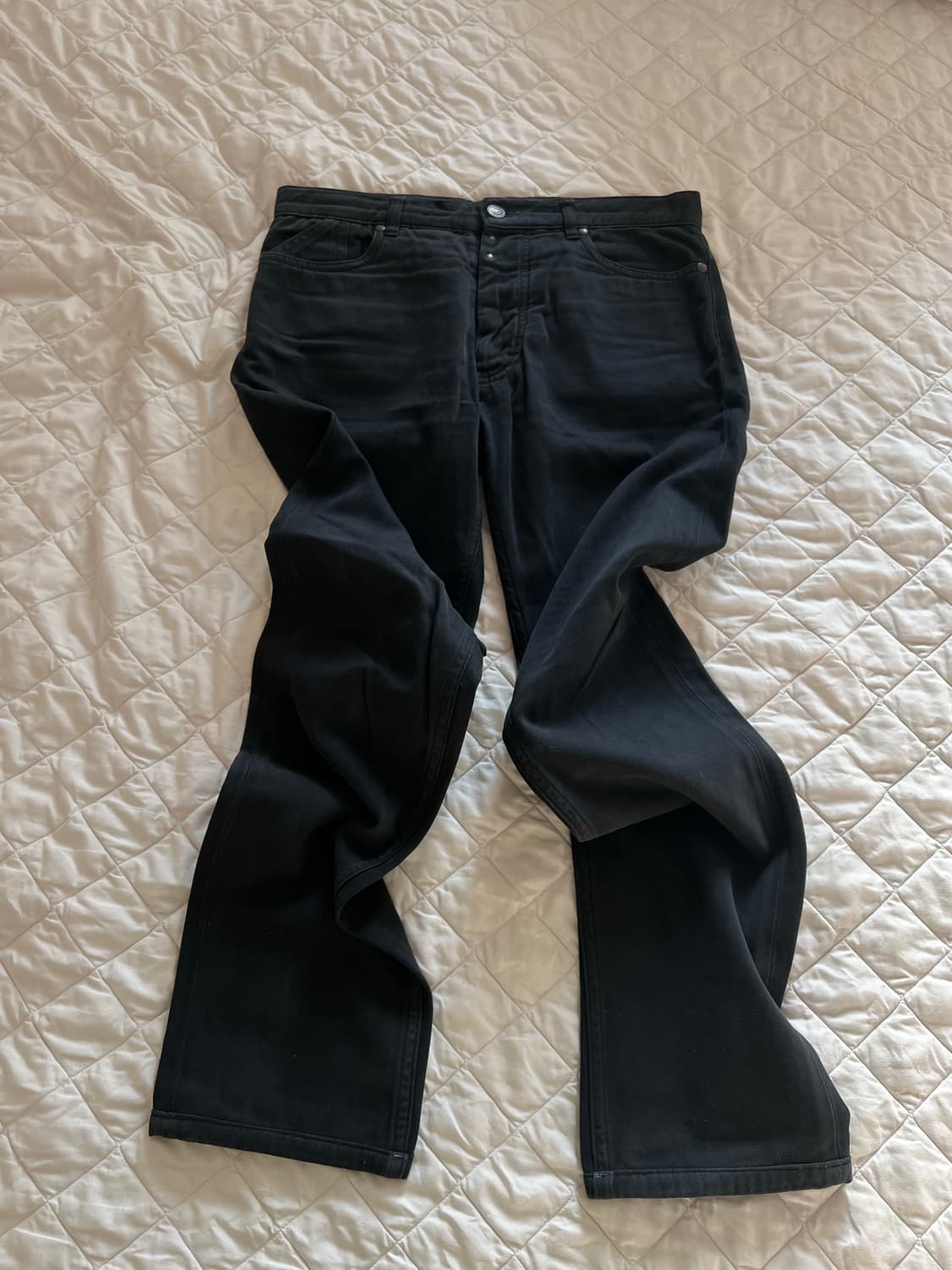 메종 마르지엘라 백스트치 슬림핏 데님입니다 워낙 스테디 제품이라 뭘 더 설명해야할지 모르겠지만 그냥 이쁩니다 슬림핏이라 핏도 매우 잘빠졌구요 백스티치 무심하게 툭 사용감이 조금 있어서 세탁하고 싶으시면 좋을듯합니다 싼가격에 처분