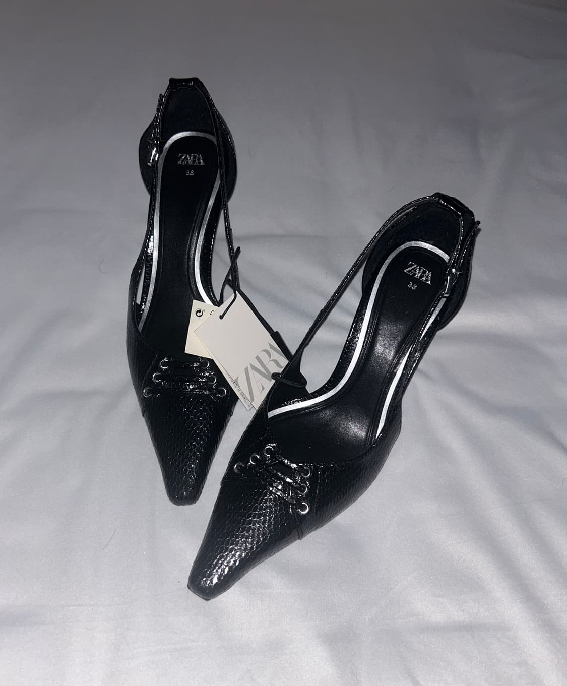 전여자친구 선물 주려다가 결국 못전하고 끝나서 계속 보관하던 새제품이에요 당시 79,900원에 구매했던 새상품입니당 택하고도 아직 다 붙어있어요 자라 기준38사이즈라 245정도인걸로 알고있습니당 🦭
