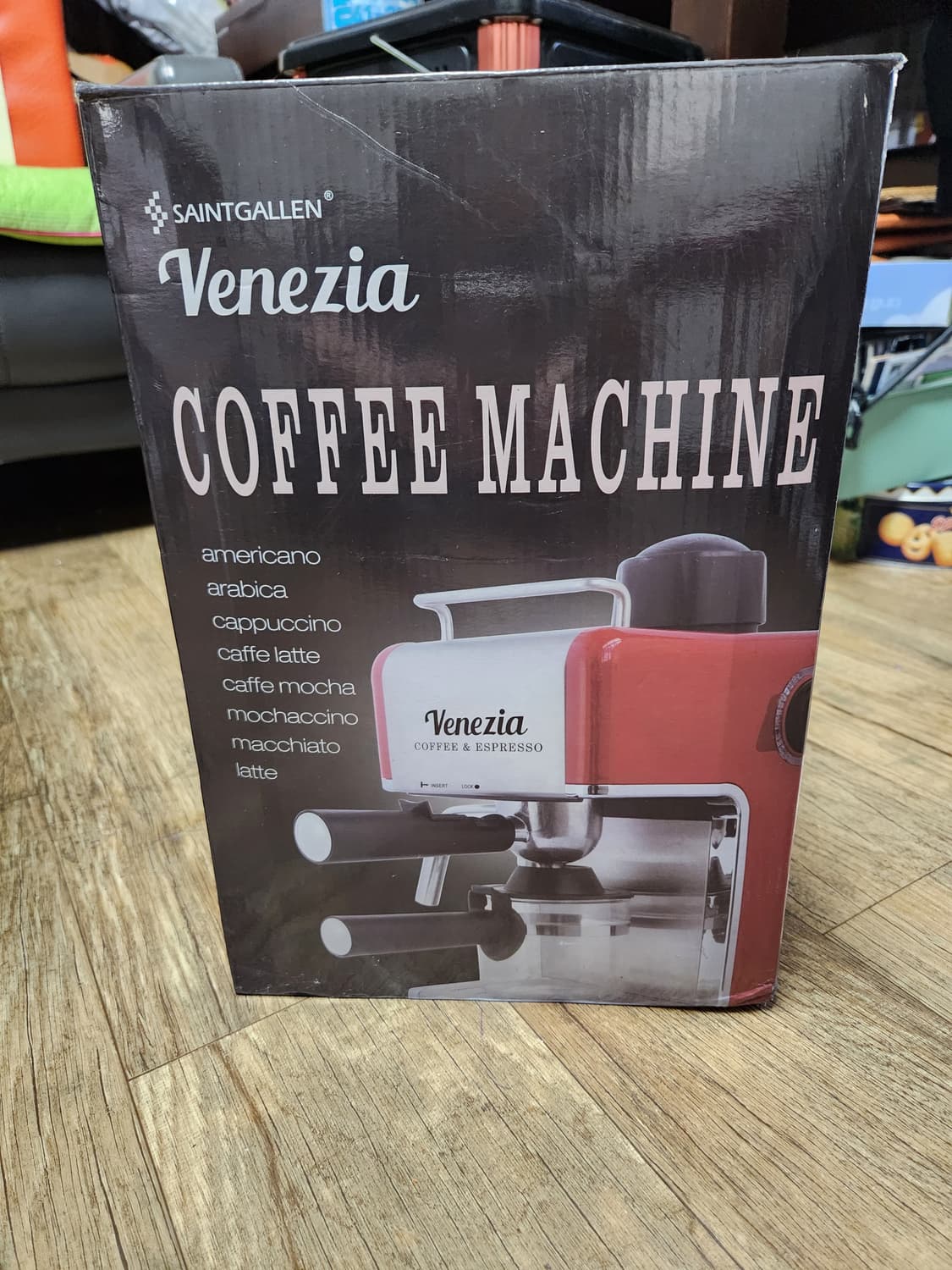 미사용 가정용 에스프레소 머신 판매합니다. SAINTGALLEN Venezia 모델이며, 박스에 포장된 새 제품입니다. 아메리카노, 카푸치노, 카페라떼 등 다양한 커피를 만들 수 있습니다. 선물받았는데 사용할줄 몰라서 보관만했어요 별도 문의 없으시면 바로 안전결제 부탁드려요!