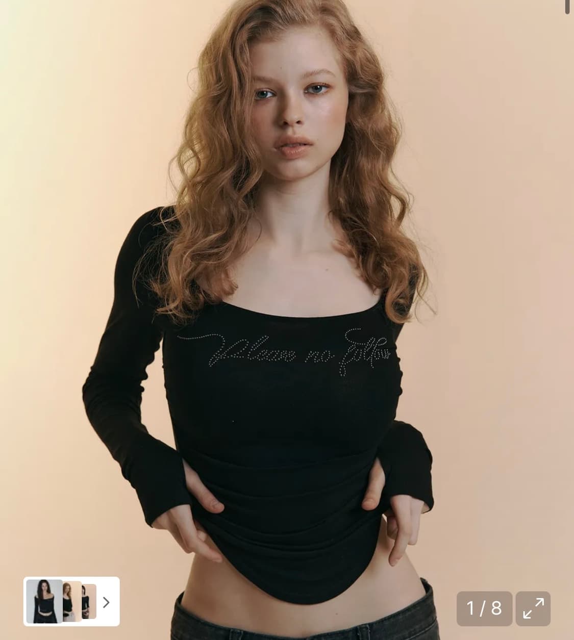 플노팔 로미 로고 롱슬이브 탑 블랙 원가 69000원 두 번 정도 입었습니당 하자 없어요! 큐빅 박혀있는게 바비 같고 이뻐요 핏도 완전 굿 🥵🖤