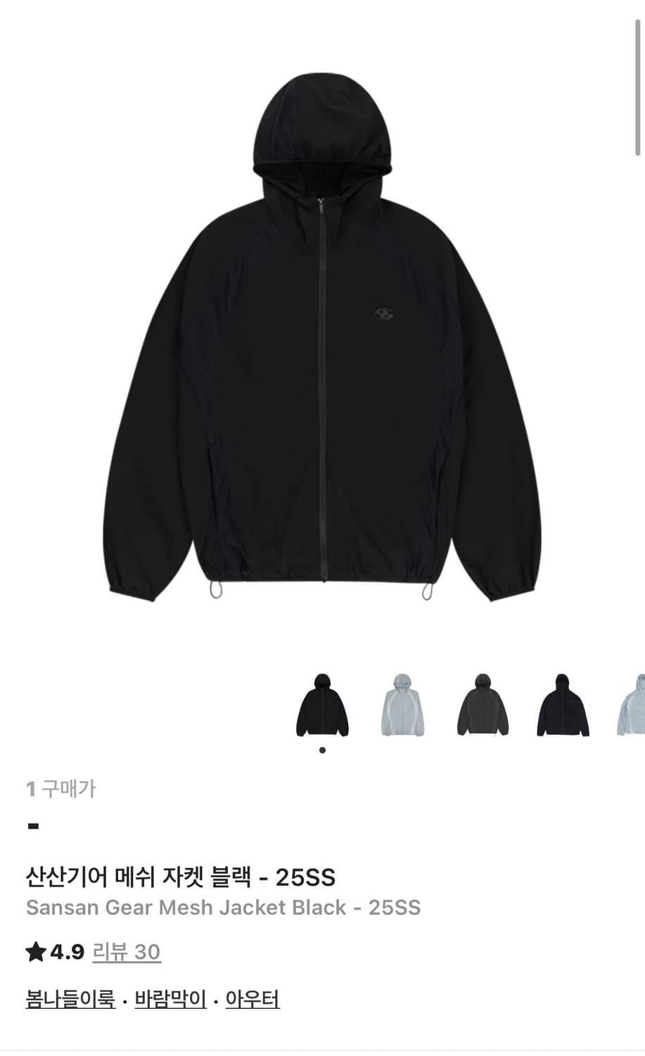 산산기어 메쉬 자켓 블랙 25ss 사이즈1