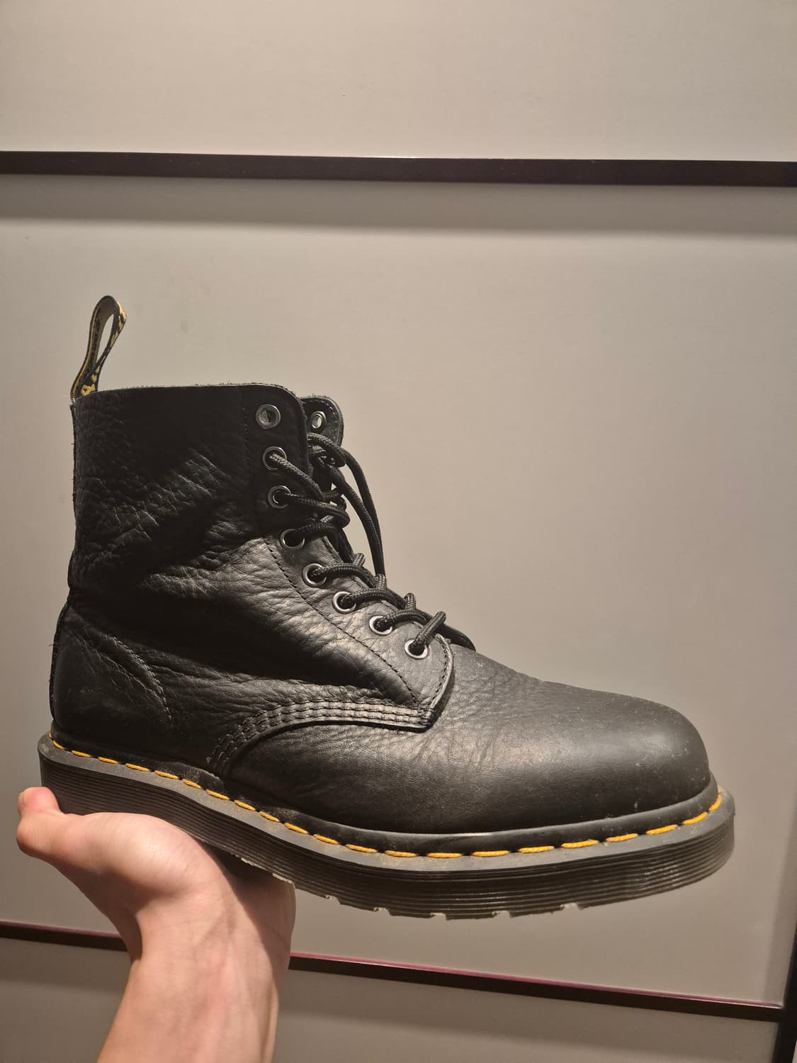 작년 닥터마틴 매장에서 구매 후 단 8회 착용했습니다. 밑창 보시면 아시겠지면 정말 상태 좋고 일반 닥터마틴과 달리 부드러운 가죽이라 발 하나도 안아픕니다. 신발 단품입니다.