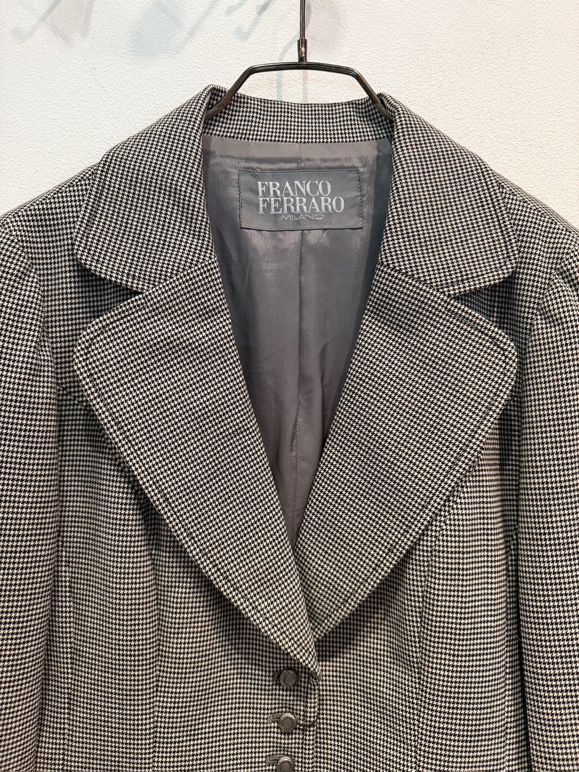 - 브랜드 : 이탈리아 밀라노 출신의 디자이너 프랑코 페라로가 설립한 브랜드입니다. "품격 있는 클래식"을 지향하며, 정교한 테일러링과 고급 원단 사용으로 유명 FRANCO FERRARO - 소재 : 울 98% 폴리우레탄 2% - 컨디션 및 디테일 : 좋은 컨디션 유지 중입니다. - 사이즈 국내 여성 S 추천 어깨 38.5 가슴 43 팔 60 총(카라제외) 56.5 - 주문 전 안내사항 꼭 읽어 주세요 ! - - 색상은 화면 밝기나 해상도에 따라 차이가 조금 있을 수 있습니다 - 빈티지 제품 특성 상 교환/환불이 어렵습니다 - 최대한 검수를 하고 있지만 빈티지 제품으로 미세한 오염및 데미지가 있을 수 있습니다 - 사이즈는 반드시 실측을 참고해 주시기 바랍니다