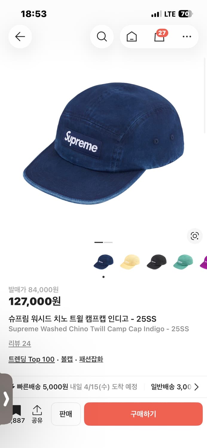 슈프림 워시드 치노 트윌 캠프캡 데님