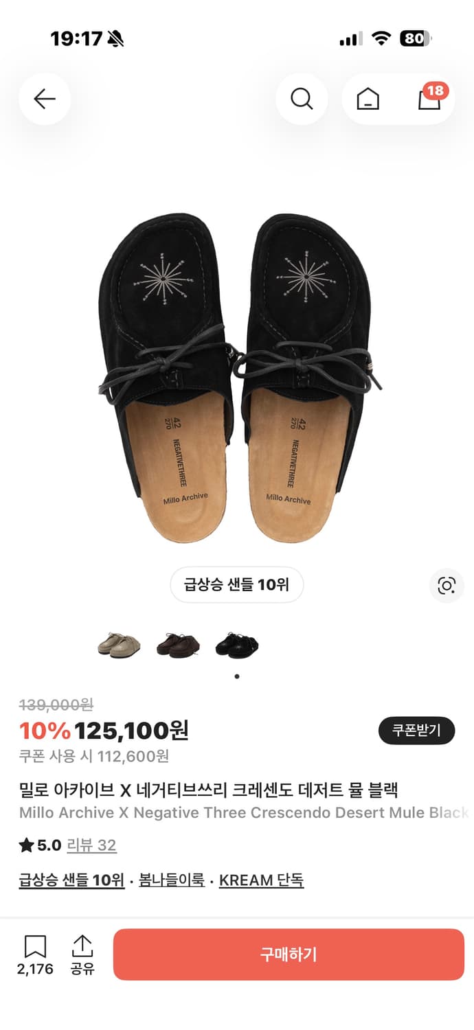 밀로 아카이브 x 네거티브스리 크레센도 데저트 뮬 블랙 사이즈 270입니다 새상품입니다