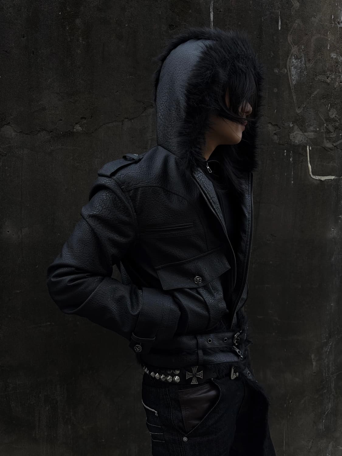 ‼️구매하시기 전 연락 먼저 부탁드립니다‼️ 해외배송 상품으로 배송까지 약 7~14일 정도 소요됩니다. 풍성한 퍼 후드 디테일과 빈티지 레더 텍스처가 매력적인 크롭 자켓입니다. 하이넥 디자인과 벨트 디테일로 유니크한 실루엣을 연출해줍니다. 숏한 기장감으로 와이드 팬츠, 데님, 카고팬츠와 매치하기 좋습니다. 스트릿 / 고딕 / 락시크 무드 코디에 포인트 주기 좋은 아이템입니다. 탄탄한 소재감으로 핏을 안정감 있게 잡아줍니다. 남녀공용 제품으로 누구나 스타일리시하게 착용 가능합니다. S / M / L S - 총장 58 / 어깨 50 / 가슴 116 / 등너비 64 M - 총장 60 / 어깨 51 / 가슴 120 / 등너비 65 L - 총장 62 / 어깨 52 / 가슴 124 / 등너비 66