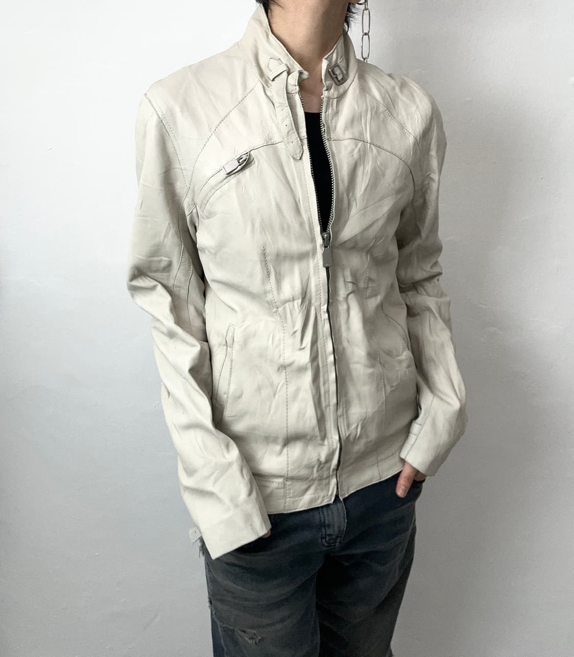 • COS 코스 레더 가죽 바이커 자켓