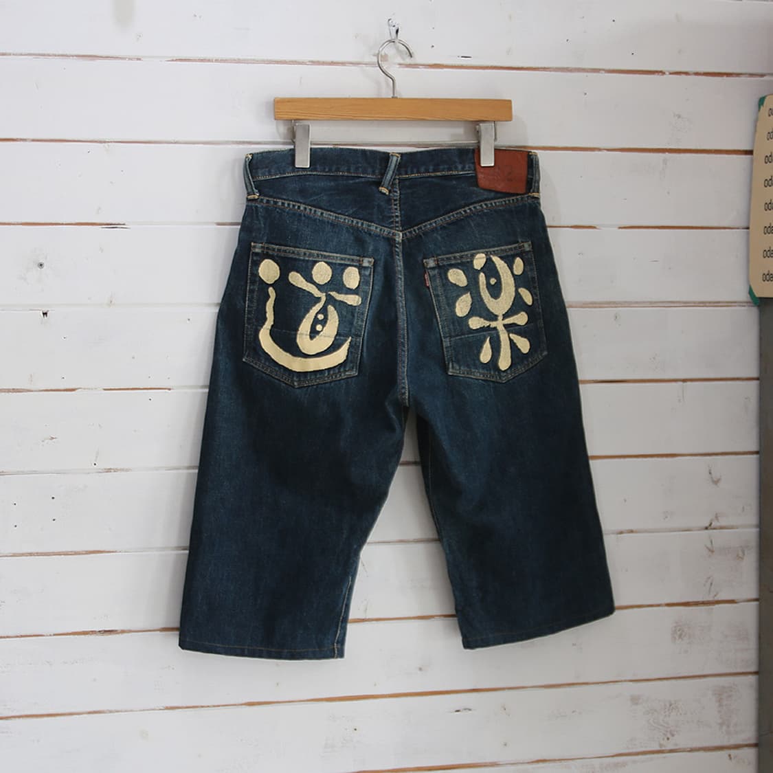 에비수 재팬 봉황 자수 데님 쇼츠 반바지 34