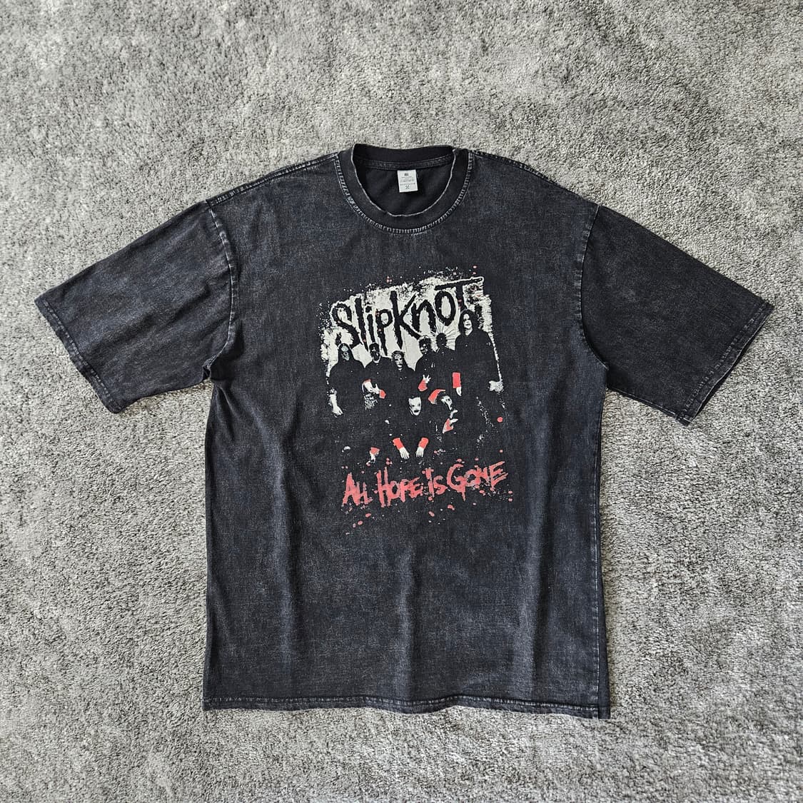 ----------------------------------------- 봄의 문턱을 낮춥니다. 4.13 - 5.13 전 상품 택배비 무료 ----------------------------------------- [의류정보] - Slipknot 밴드 그래픽이 돋보이는 빈티지 스타일 반팔 티셔츠입니다. - 워싱 처리된 블랙 색상으로 빈티지한 무드를 연출합니다. - 면 100% 소재로 편안한 착용감을 제공합니다. [케어 완료] 세탁 | 스팀 | 촬영 [사이즈 안내 – 단면 기준 / cm] 어깨너비 (Shoulder Width) :60 가슴단면 (Chest) :61 소매길이 (Sleeve Length) :30 총장 (Front Length) :82 UMO APPAREL 연남로11길 58 1F @umo_apparel