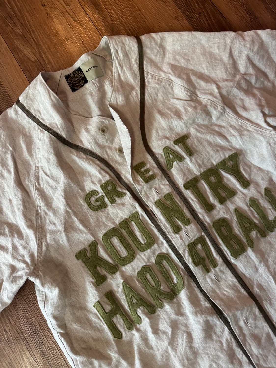 캐피탈 베이스볼 셔츠 3사이즈 판매합니다. 빈티지한 디자인이 매력적인 제품입니다. 전면에 큼지막하게 로고가 박혀있어 포인트 주기 좋습니다. 문의 없으시면 바로 안전결제해주시면 됩니다! 2회착 정도 하였습니다.