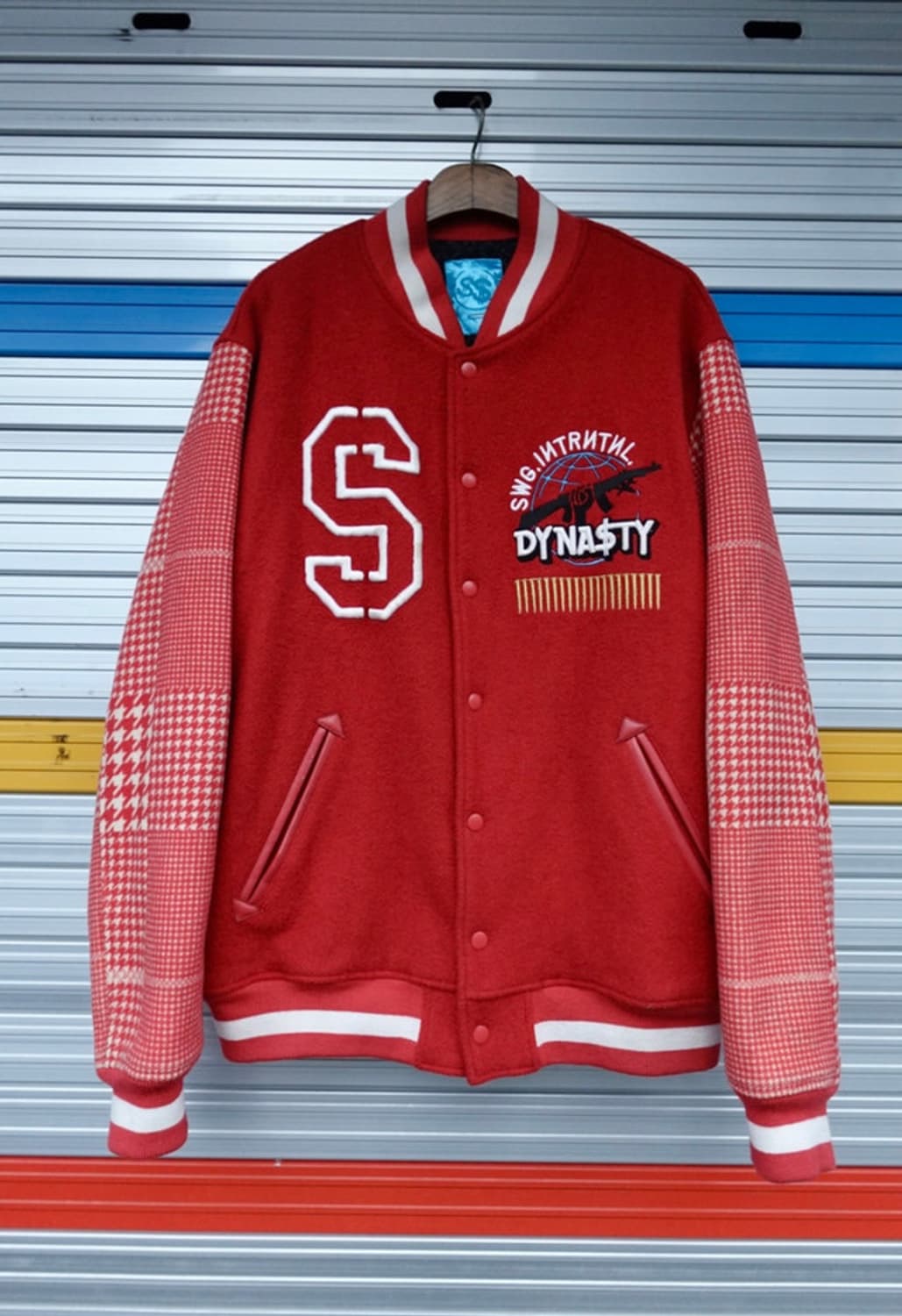 Swagger A/W2007 Dyna$ty bullet embroidered varsity 1999년 도쿄에서 탄생한 일본 1세대 스트릿 브랜드 스와거 브랜드 내 초인기 모델로 꼽히는 2007년도 Dyna$ty 바시티 자켓입니다. 아프간 스톨을 연상케하는 슬리브, 탄띠를 두른듯한 자수 디자인 자연스러운 사용감 존재하는 컨디션입니다. 어깨 55 가슴 62 총장 74 팔 70 (cm)