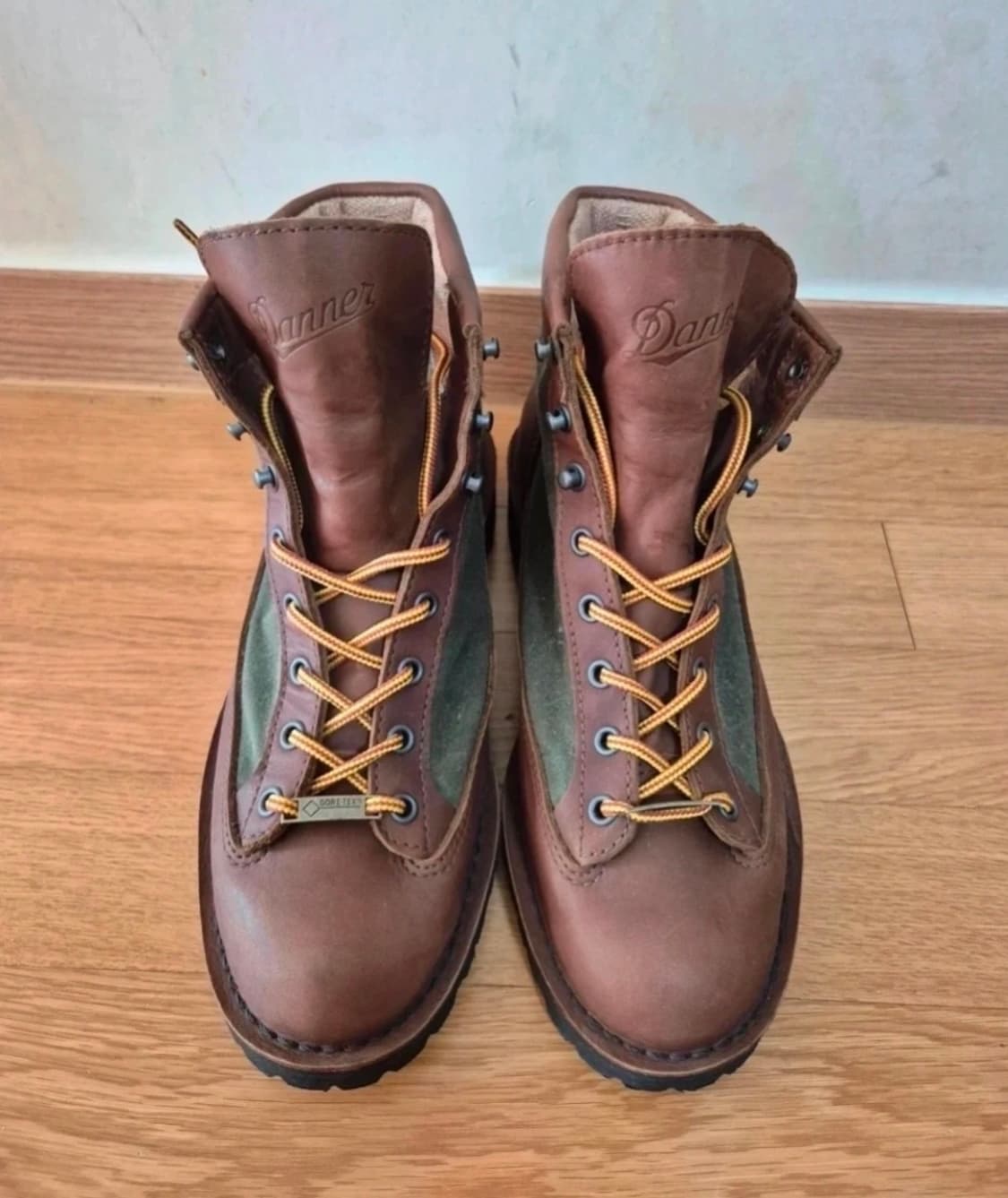 대너 라이트 팀버 고어텍스 부츠 7.5 사이즈입니다 브라운 색상에 그린색 패브릭이 믹스매치되어 멋스러워요 비브람솔이 적용되어 접지력도 우수합니다 등산, 캠핑 등 아웃도어 활동에 최적화된 부츠예요 대너 라이트 팀버 고어텍스 등산화 7.5 사이즈입니다 가죽과 나일론 소재가 믹스되어 멋스러워요 비브람솔이 적용되어 접지력도 우수합니다 튼튼하고 편안한 착화감으로 오래 신기 좋아요 등산이나 캠핑 활동에 딱 맞는 신발이랍니다