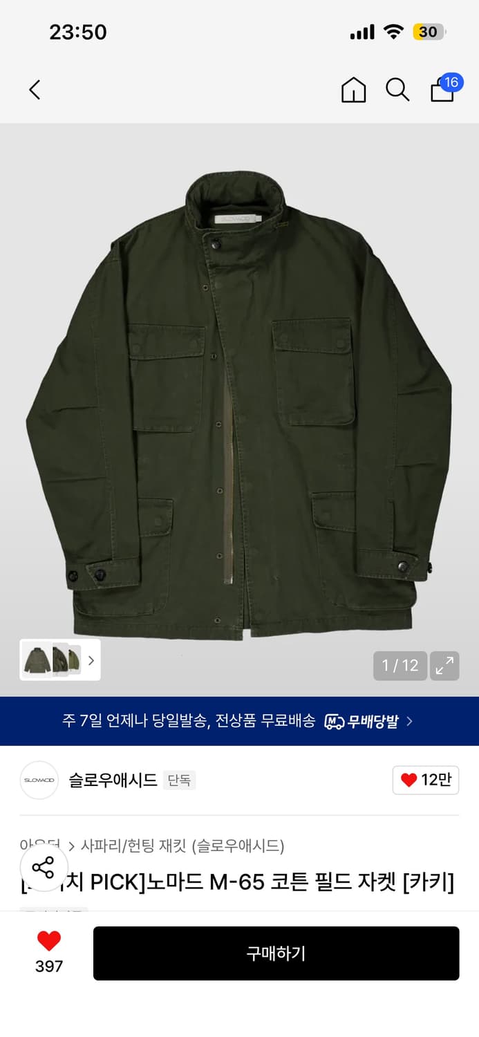 [슬로우애시드] 고스트 실루엣 패디드 점퍼 (카키/S사이즈)