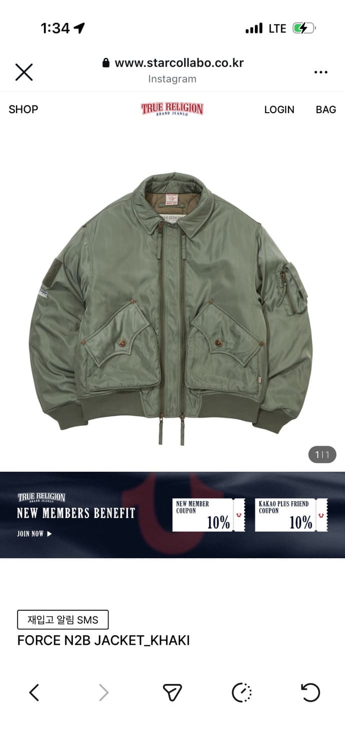 트루릴리젼 n2b 자켓 ma1자켓 카키