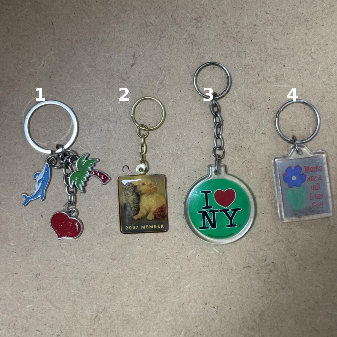 1. 여러 참 달린 키링 (돌고래/야자수/사과) 2. 강아지 사진 키링 3. I ❤️ NY 키링 4. Moms 문구 키링 미국 빈티지 무드가 느껴지는 레트로 키체인 모음입니다. 여행지 기념품 특유의 감성, 오래된 향수병 라벨을 떠올리게 하는 그래픽, 그리고 세월감 있는 메탈 소재가 어우러져 소장가치가 높은 아이템들입니다. 가방, 열쇠, 파우치에 달아 포인트 주기 좋고, 빈티지 컬렉션이나 레트로 소품을 좋아하시는 분들께 추천드립니다. 각각 개성이 달라 단품으로도, 여러 개를 함께 매치해도 분위기 있게 연출됩니다. 개당가격입니다. 문의사항있으시면 연락주세요. 감사합니다.