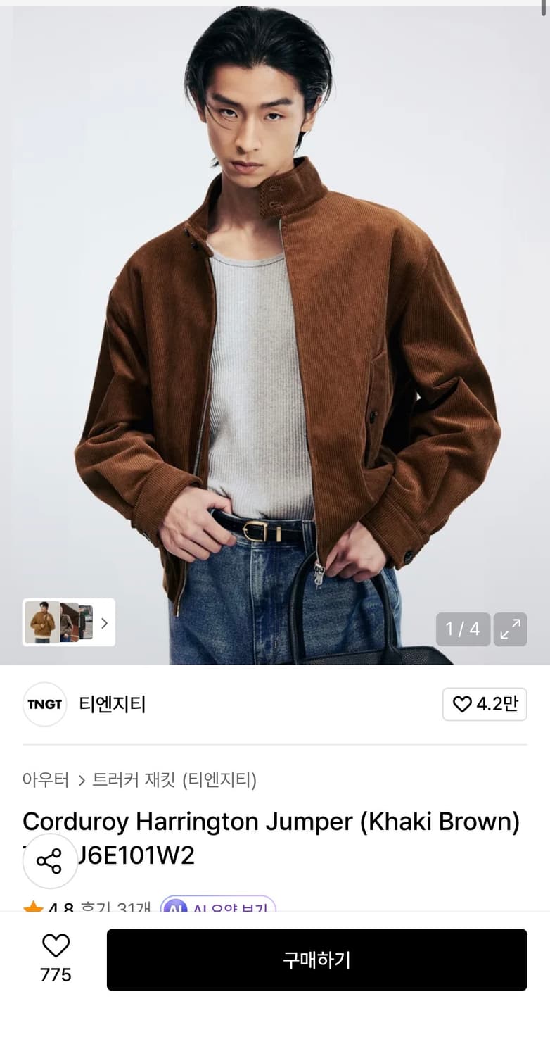 TNGT 26ss해링턴자켓 판매합니다 사이즈는 100이고 브라운이라 코디하기 좋습니다 저랑은 좀 안어울리는거 같아서 판매합니다