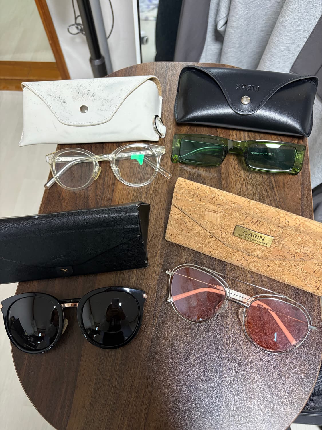 흰케이스 페이크미 안경-30000 윗줄 검정케이스 쉬인 패션 선글라스 5000 아랫줄 2개 카린 선글라스-10000(검정),30000