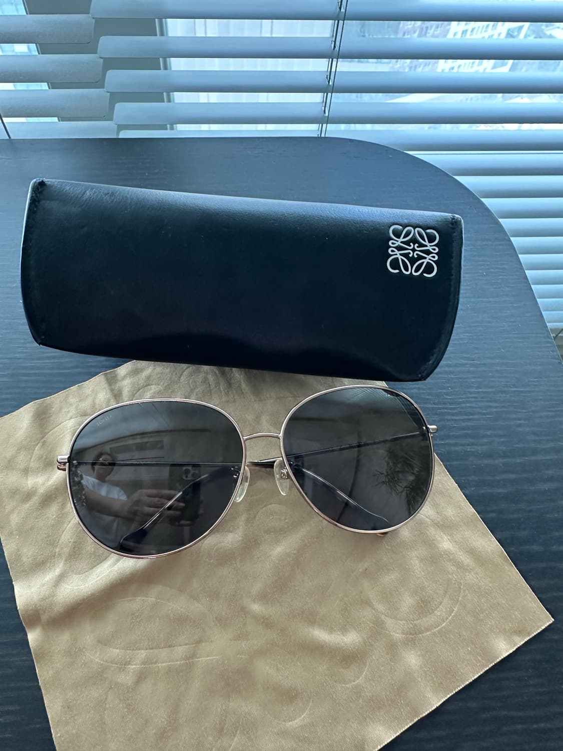 로에베 선글라스 -새상품급 -모델명 SLW 479G, 로즈골드 색상 사진에서 보이는 것처럼 케이스와 함께 보내드려요 데일리로 착용하기 좋은 아이템이에요 시력이 안좋아서 거의 착용 못해서 판매해요 50만원후반대 구매한거로 기억합니다.