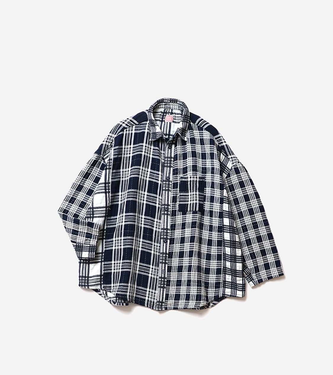 · Flannel Check Post Shirt 입니다 · 하단 버튼 1개 결손있습니다 · 4종류의 체크 무늬 원단을 조합한 제품입니다 · 전체적으로 들어간 스티치 디테일이 매력적인 제품입니다 · 여유있는 오버 사이즈 실루엣의 제품입니다 · MADE IN JAPAN · 발매가 41,580엔 · 표기 사이즈 M · 가슴 76 / 어깨 67 / 팔길이 48 / 총장 79 (측정법에 따라 1~2cm 오차가 존재할 수 있습니다)
