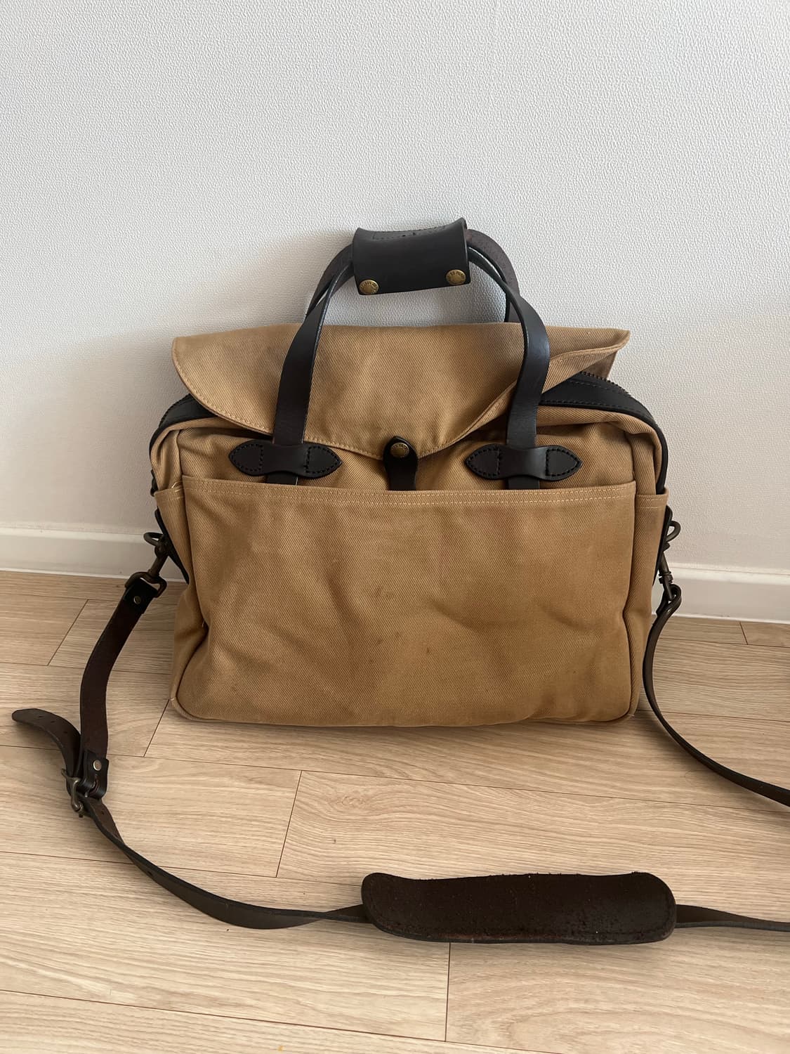필슨의 257 탄 색상입니다. 필슨의 스테디라고 할 수 있는 257 가방입니다. 256보다 사이즈가 커서 수납력에 장점이 있습니다. 구매한지는 한참 지났으나 몇년동안 들지 않고 보관만 했습니다. 유행타지 않는 앞으로도 오래 들 수 있는 가방이라고 생각합니다. 교환 환불 불가이니 사진 잘 확인하시고 구매부탁드립니다.
