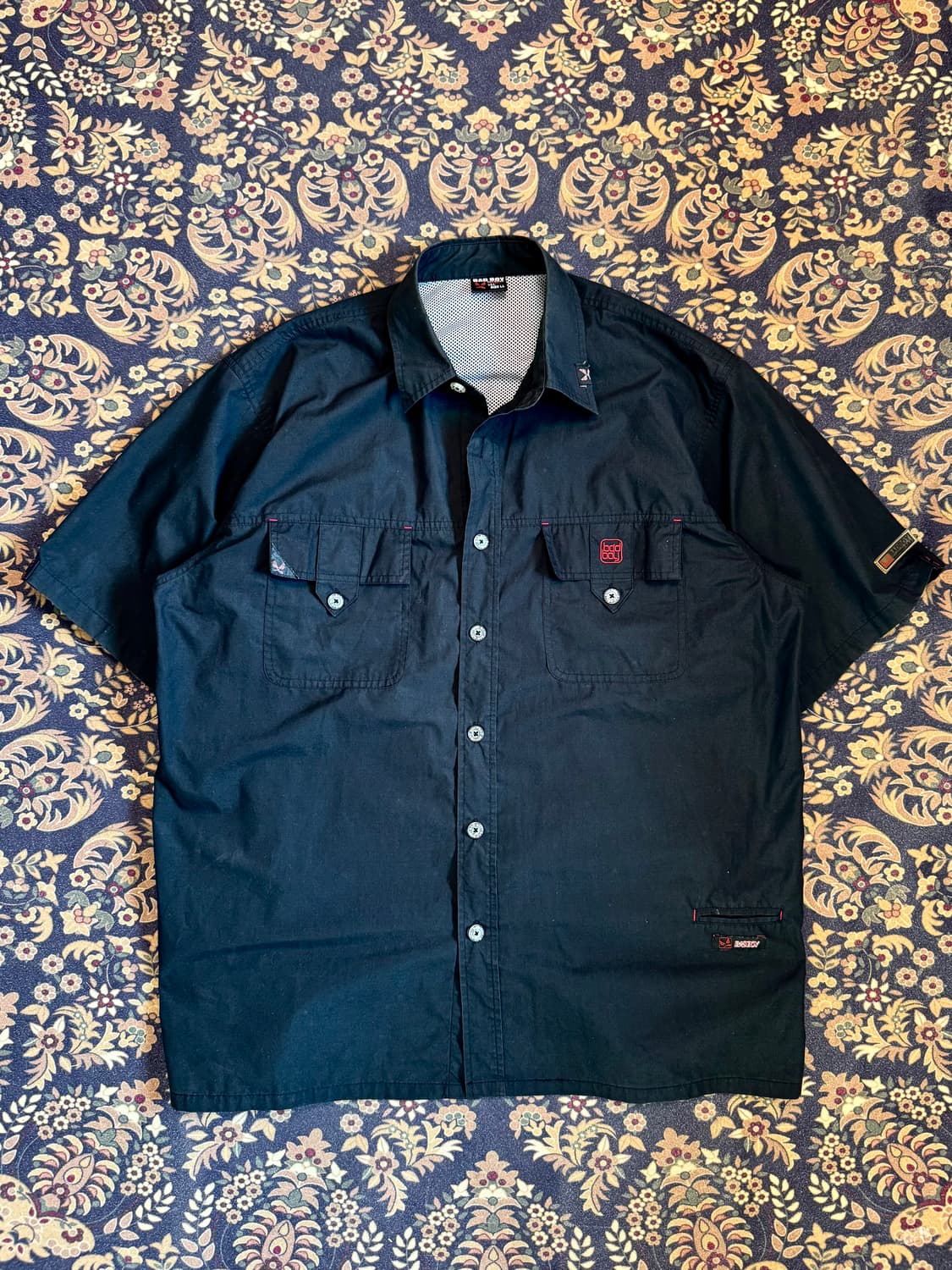 1982년 미국 샌디에이고에서 시작된 Bad Boy는 서핑과 스케이트, 그리고 이후 전설적인 주짓수 가문 그레이시 페밀리를 후원하며 MMA와 스트릿 컬처까지 아우르는 상징적인 브랜드가 되었습니다. 단순한 스포츠웨어를 넘어, 90년대 후반과 2000년대 초반 스트릿 신을 상징하는 아이콘 같은 존재로 자리 잡았습니다. 당시 힙합과 익스트림 스포츠 문화의 한가운데 있었던 브랜드답게, 과감한 그래픽과 기능적인 디테일이 특징입니다. 전면의 워크셔츠 기반 디자인 위에, 등판에는 큼직한 그래피티 그래픽 자수로 확실한 존재감과 내부에는 메쉬 라이닝이 적용되어 실제 착용 시 통기성까지 고려된 구조를 갖추고 있습니다. 소매 러버 패치와 포켓 디테일 등, 당시 스트릿웨어 특유의 과감하고 기능적인 무드를 그대로 느낄 수 있는 한 점입니다. 표기 LL (XL) 어깨 54 가슴 65 기장 78 . . . Price: 79,000