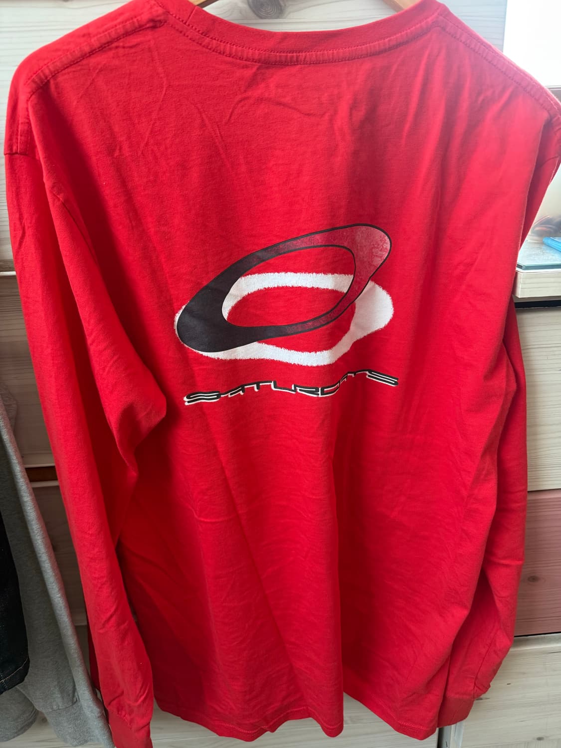 사이즈는 M이고요 작년인가 오사카 오클리 매장에서 구매했어요! 오사카에서만 파는 제품입니다 색깔도 예쁜데 두번 입고 안 입어서 거의 새상품입니다!!!!! 여성 남성 상관없이 다 잘 맞을 것 같아요 레드랑 오렌지 사이 다홍빛? 그런 색상입니다