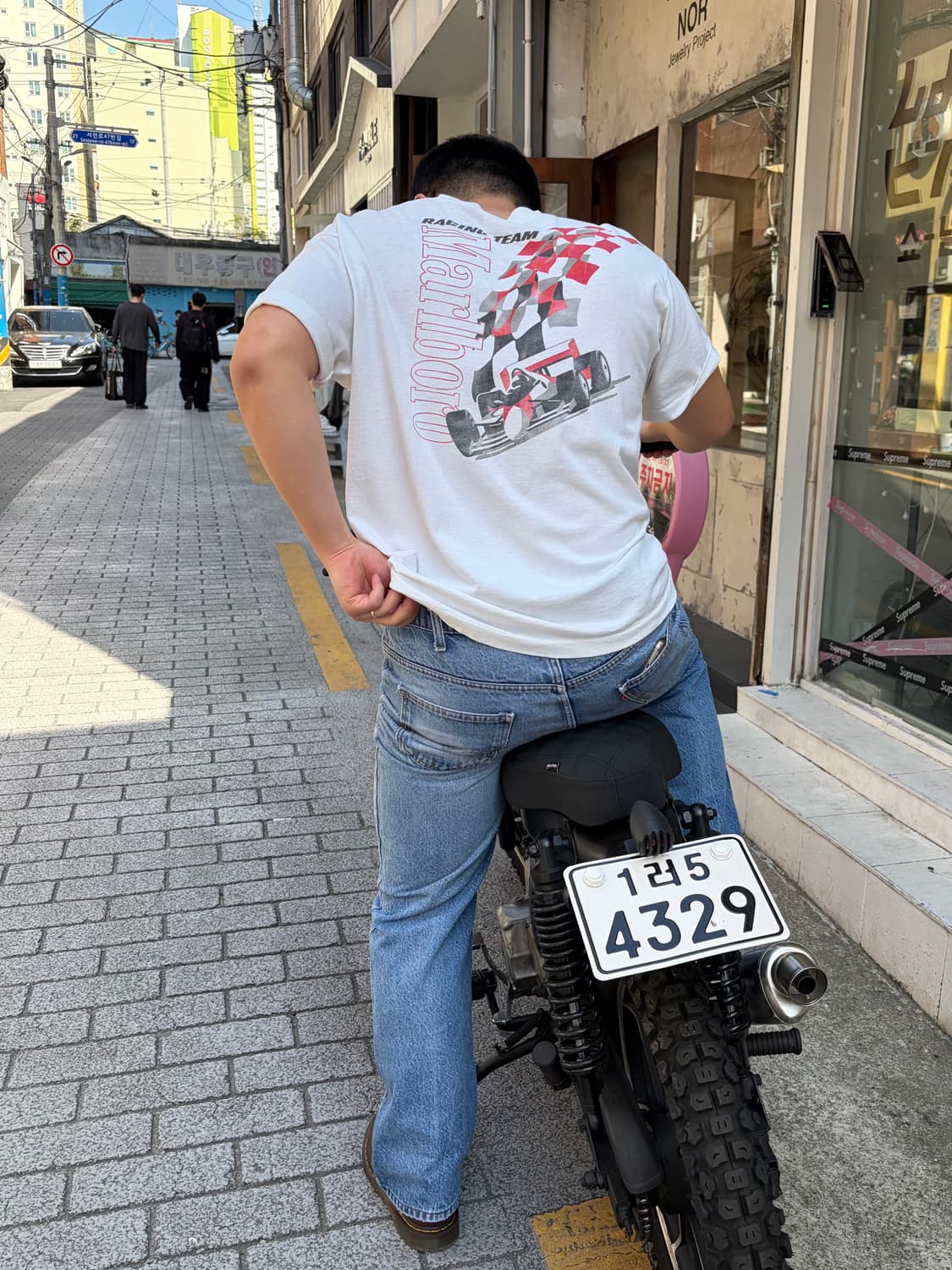 90‘s Marlboro Grand Prix F1 racing team print T-shirt 기호식품 중 담배 브랜드 중 가장 유명한 브랜드인 `Marlboro’ 사의 Grand Prix F1 레이싱 팀 티셔츠입니다. 미국의 다양한 굿즈 문화 중에서도 특히나 특정 브랜드들의 스포츠 및 레이싱 굿즈들은 또다른 감도로 디자인적으로도 재미난 피스들이 왕왕있습니다. 해당 개체도 그런 웨어 중 하나로 볼 수 있으며 말보로 사의 F1 페라리 팀의 공식 후원 피스입니다. 자세하게는 70년대부터 90년대까지 모터스포츠의 가장 큰 스폰서 중 하나였습니다. 특히 맥라렌과 페라리팀을 후원하며 전설적인 드라이버 아이르통 세나, 미하엘 슈마허 등과 함께 전성기를 누렸습니다. 당시에는 담배 광고 규제가 지금처럼 엄격하지 않았기 때문에, 이런 굿즈 의류들이 제작되어 이벤트나 마일리지 적립을 통해 한정 굿즈들을 지금에선 빈티지로 볼 수 있습니다. 체커보드 디자인 디테일, 싱글스티치, 튜블러 방식으로 제작이된 개체라 아마 빈티지를 좋아하시는 분들에겐 충분히 알아보실만한 녀석이라 마음에 드실 녀석이지 않나싶네요. 사이즈도 낭낭한 편이며 길이가 길다면 편하게 자르시거나 다양한 연출용으로 착용해보시길 권해드려보는 녀석입니다! - 총장 68 어깨 58 가슴 62 소매 20 - Size: XL (표기) - Price: 12.0 - • 빈티지 특성상 약간의 오염이 있을 수 있습니다. • 교환, 환불이 어려워 신중한 구매부탁드립니다. • 약간의 사이즈 오차(1,2cm)가 있을 수 있습니다. - Contact DM Discount ALSO