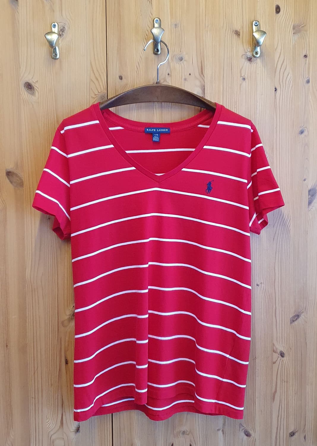 폴로 브이넥 반팔티 편안한 와이드 브이넥이구요 상태 깨끗합니다 사이즈66 . 소재 면 . 색상 레드 가슴반품47 . 총기장62