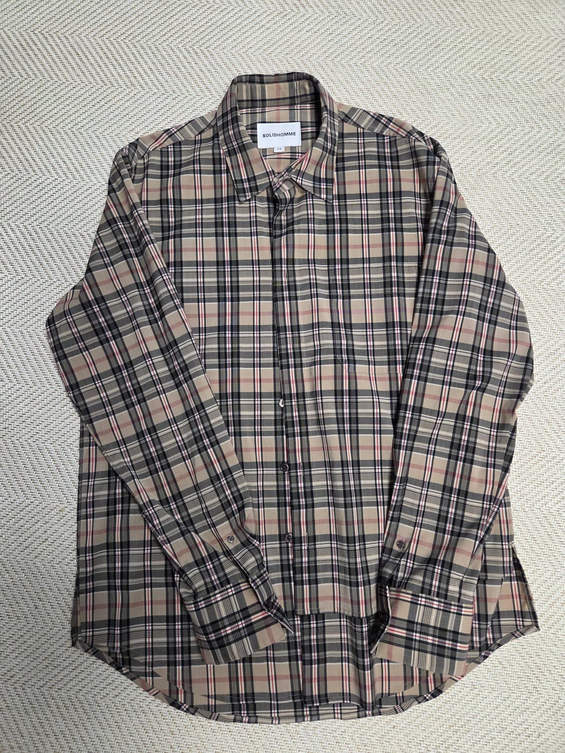 솔리드옴므 체크 셔츠 판매합니다. 사이즈 48 (103정도) 실측 ( 미세 오차 있을 수 있음) 겨투겨 : 56 총장 : 78 한 쪽 면이 두 겹으로 레이어드 가능한 셔츠입니다. 무난, 차분한 색상이고 착용 1회하여 상태 좋습니다. 체크 셔츠가 많아 잘 입지 않아 판매합니다. 교환, 반품, 환불 불가