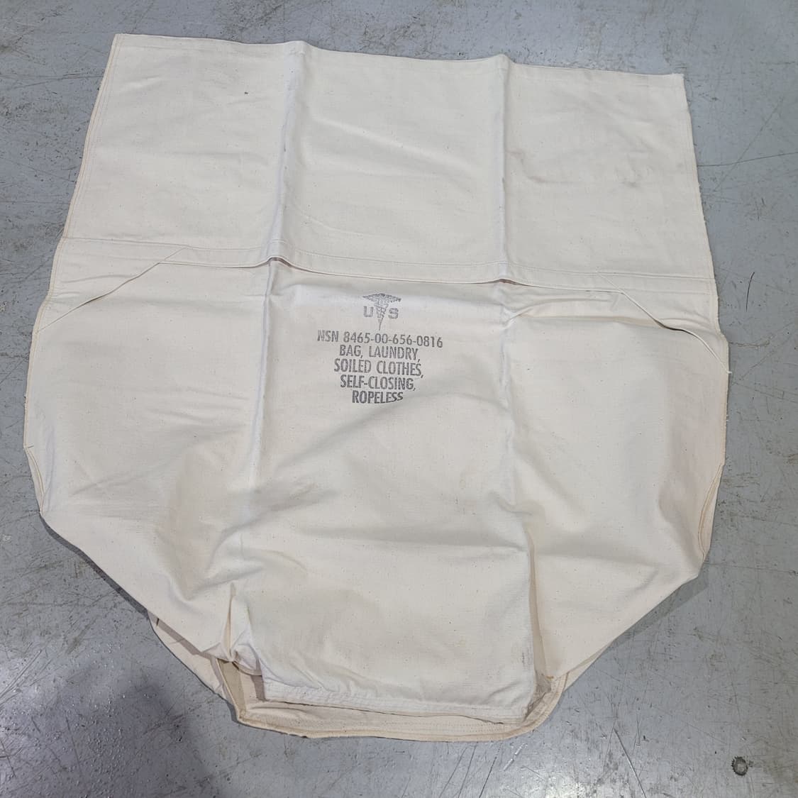 군용 로프리스(Ropeless) 세탁 가방입니다. 군대 막사나 야전에서 군인들이 더러워진 옷이나 침구류를 수집하고 운반하기 위해 설계된 표준 보급품입니다. 독특한 폐쇄 방식 (Ropeless): 일반적인 세탁망과 달리 로프나 끈을 사용하지 않습니다. 입구 부분이 샌드위치 백처럼 접어서 닫히는 구조이며, 상단에 '셀프 클로징(Self-closing)' 밸브가 있어 내용물이 쏟아지지 않게 설계되었습니다. 튼튼한 소재: 거친 환경에서도 견딜 수 있도록 매우 질긴 천연 코튼 덕(Cotton Duck) 캔버스 소재로 제작되었습니다. 크기 및 구성: 약 25인치(63.5cm) 너비에 46인치(116.8cm) 높이의 대용량이며, 운반용 손잡이 2개 달려 있습니다 굉장히 두꺼운 캔버스 소재라 튼튼 합니다 새제품인데 년식이 있어 얼룩이 좀 있습니다