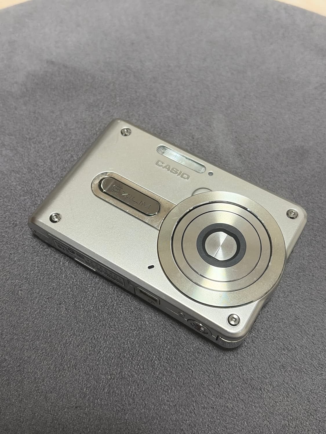 Casio Exilim EX-S100 실버💿 ​ 89g으로 정말 가볍고 슬림한 심플한 메탈실버 포켓 디지캠입니다!! Exilim 특유의 부드러운 피부 표현과 맑으면서도 빈티지한 색감을 느끼실 수 있어요. ​ ⚡️ 2004년 출시 300만 화소 3배 광학줌 무게: 약 89g 사이즈: 87 x 57 x 16.7 mm ​ 구성 카메라 , 배터리 , 충전기 (10000원 추가시 SD카드 구매 가능) 모든 기능 정상 작동합니다! 카메라 상태 정말 좋아요! 렌즈 액정 모두 깔끔합니다! 최근에 카메라가 많아지면서 정리하고 있어요! 좋은 주인 만나길 바래요!! ​