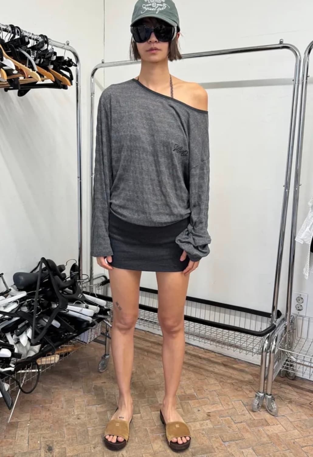 SEO RIBBED HEM OFF-SHOULDER TOP CHARCOAL