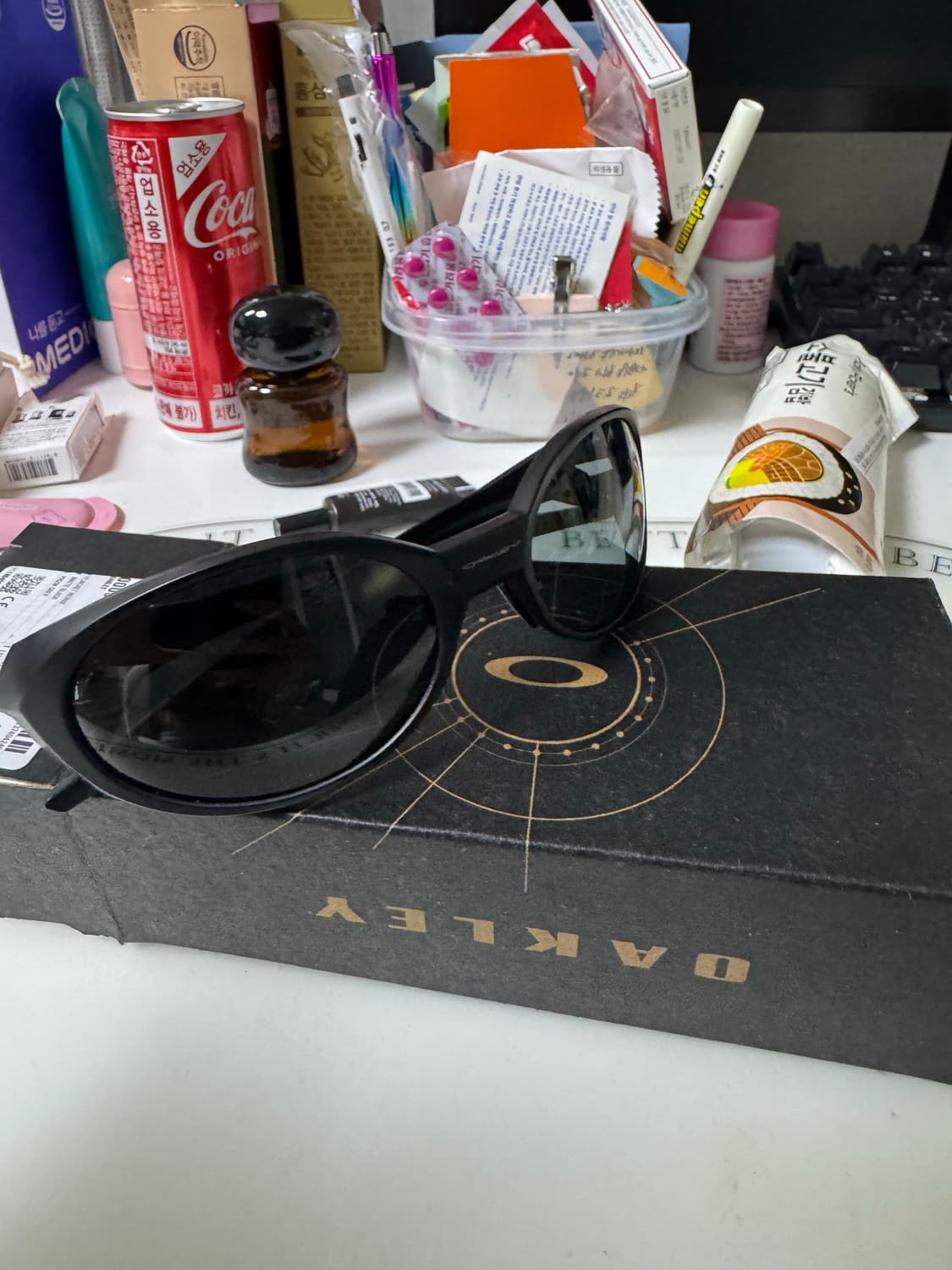 오클리 선글라스 구매한지 한달채도 안된건데 저와 어울리지 않아 판매합니당 실찰 2번 이구요 상자+안경집 크림 구매 인증 올렷습니당