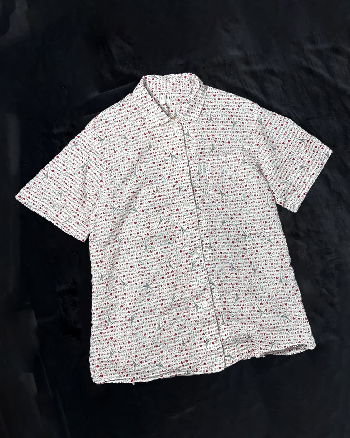 옐르 재팬 라인의 유니크한 패턴의 셔츠 입니다 - 한 여름용 원단 - 여유로운 핏 - 단추에 브랜드 각인 - 카라 길이감이 짧은 편 - 왼쪽 가슴에 포켓과 포인트 라벨 - 유럽 감성의 디자인에 일본 특유의 탄탄함이 조화로움 - 프렌치 시크함을 즐기는 분들에게 추천 드립니다 상세 촬영 : 아이폰 15 & 주광색(흰색) 조명 (cm) 총장 70 어깨 45 가슴 54 소매 22
