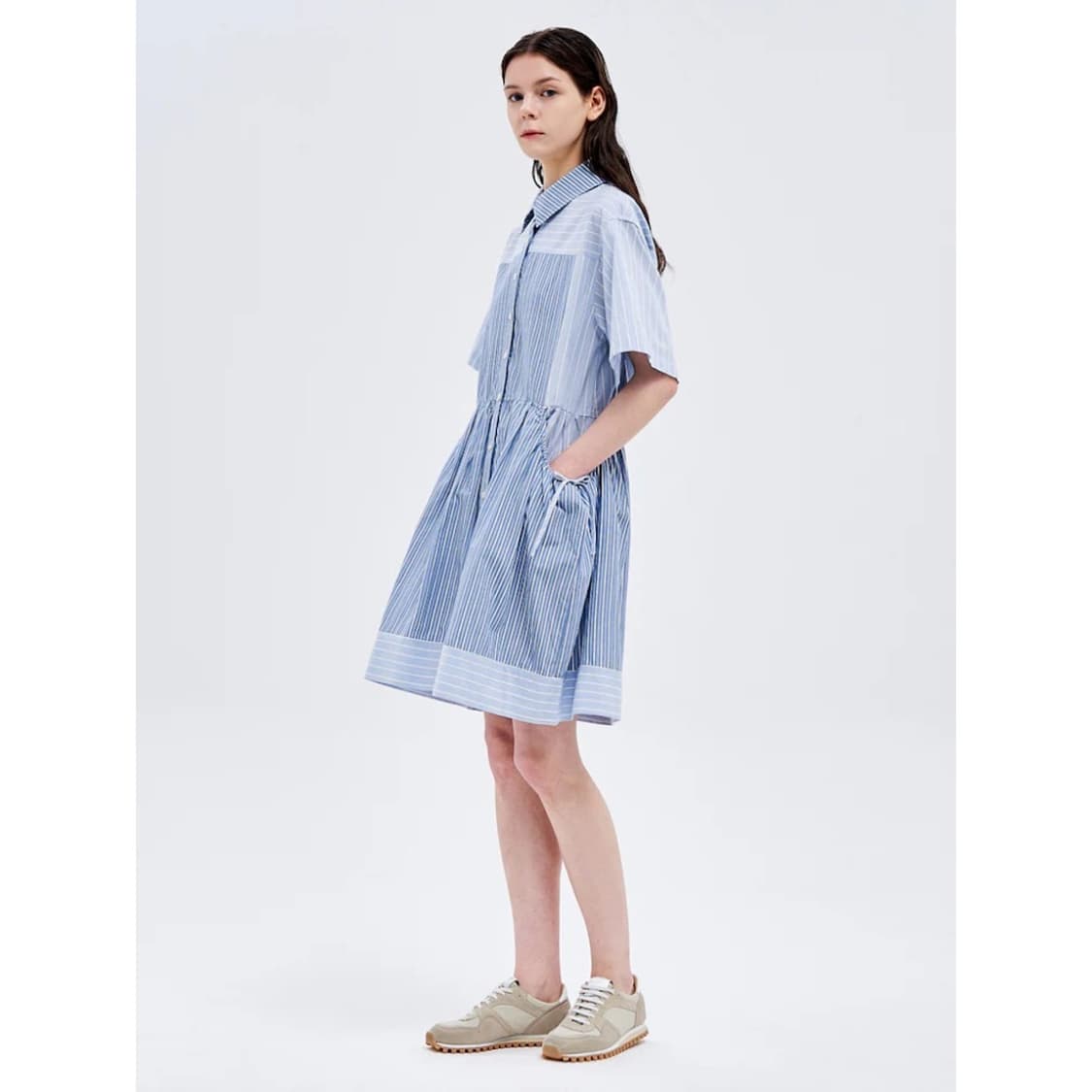 정상가 795,000 씨뉴욕 신상 튜닉 원피스예요. 시원시원한 톤에 제각기 굵기의 스트라이프 패턴 조화가 청량하면서도 유니크한 분위기를 연출해줘요. 무릎 위로 올라오는 기장감에 허리 주름 디테일로 플레어하게 떨어져 단독으로 미니 원피스처럼 입어주셔도 좋고, 팬츠와 레이어드해주셔도 예뻐요.