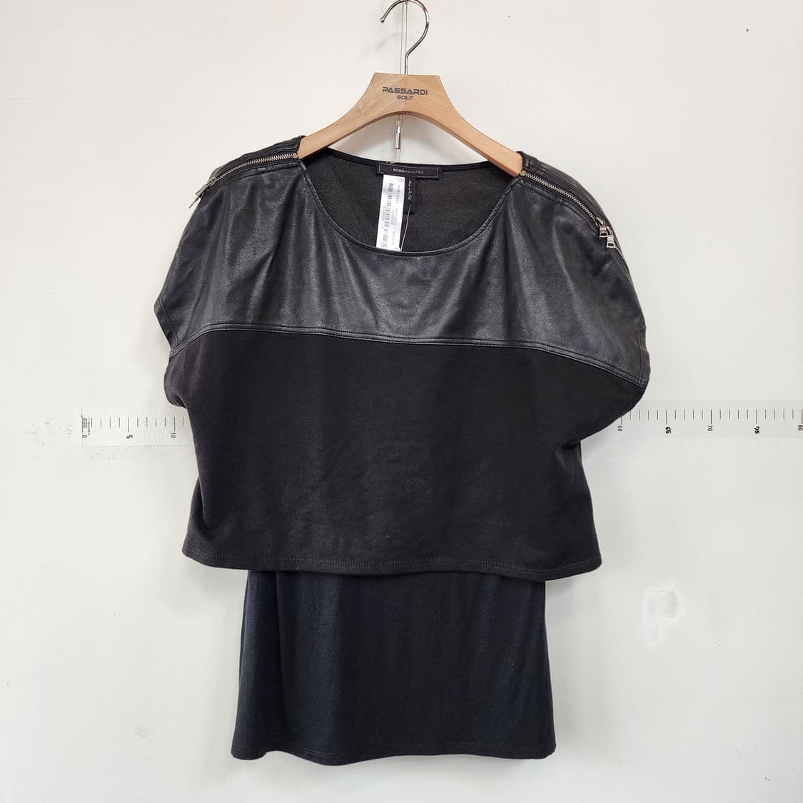 BCBG 블랙 반팔 티셔츠 판매합니다. 가죽으로 배색되어 있어 독특하고 예뻐요. 어깨에는 지퍼 디테일까지 있어 유니크합니다. 문의 없으시면 바로 안전결제해주시면 됩니다! 반품/교환/환불❌️