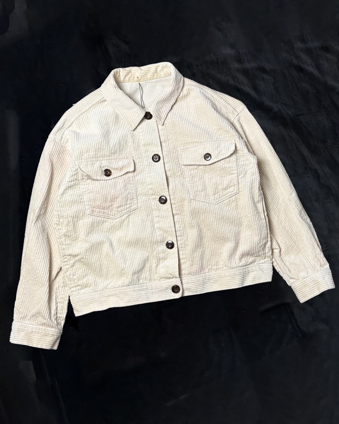 골덴 원단의 클래식한 자켓 입니다 - 골덴 원단 - 아이보리 색감 - 단추 두둠하고 광택이 있는 편 - 후드티와 레이어드 해도 답답함이 없는 품 - 오버핏 - 크롭한 기장 - 원단 퀄리티 좋음 상세 촬영 : 아이폰 15 & 주광색(흰색) 조명 (cm) 총장 54 어깨 51 가슴 55 소매 51