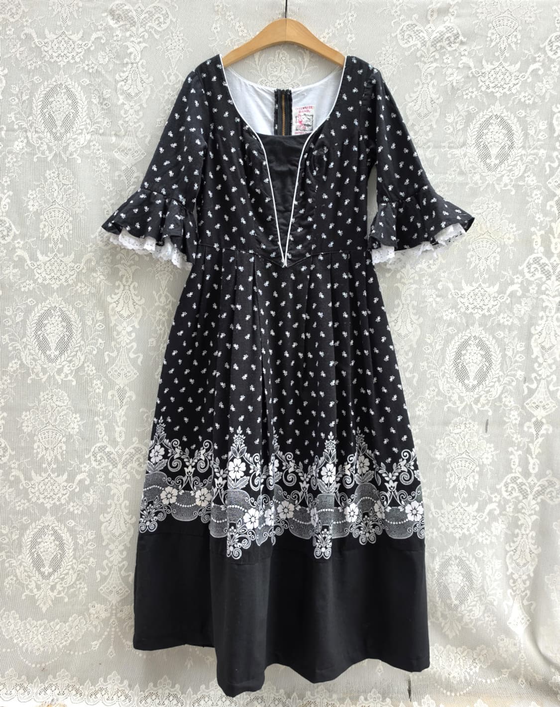 총장: 116 cm 어깨 +팔 : 46 cm 가슴 : 43cm 허리 : 36 cm 소재: 면 100 % 표기사이즈 40 안녕하세요~ 봐주셔서 감사합니다. 70년대 빈티지 독일 브랜드 제품입니다. 독일 알프스 근처 바이렌 지역 브랜드로 전통 의복을 손수 작업 하는 곳이네요. 올드 모델로 컨디션도 좋습니다. 한여름엔 덥겠고 봄가을에 좋겠네요. 여자분 m 사이즈쯤 딱맞게 입어야 이쁩니다.
