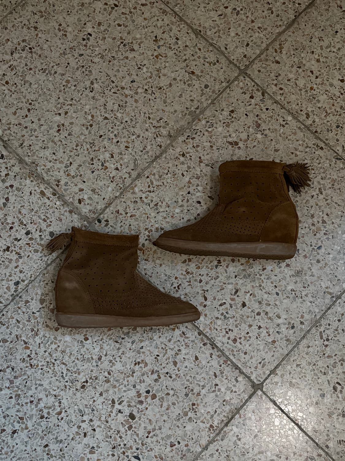 이자벨마랑 웨지힐 부츠. 히든 힐 있어요. 37 240사이즈. 부분적으로 스웨이드 눌림 있습니다. 사진 상세하게 찍었으니 확인해주세요.